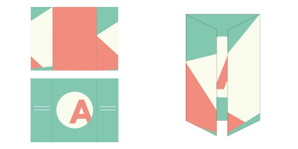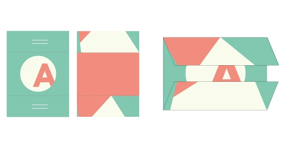 Orizzontale: 2 pieghe a finestra 6 facciate Formato aperto: 42x29,7 cm (A3) Formato chiuso: 21x29,7 cm (A4)